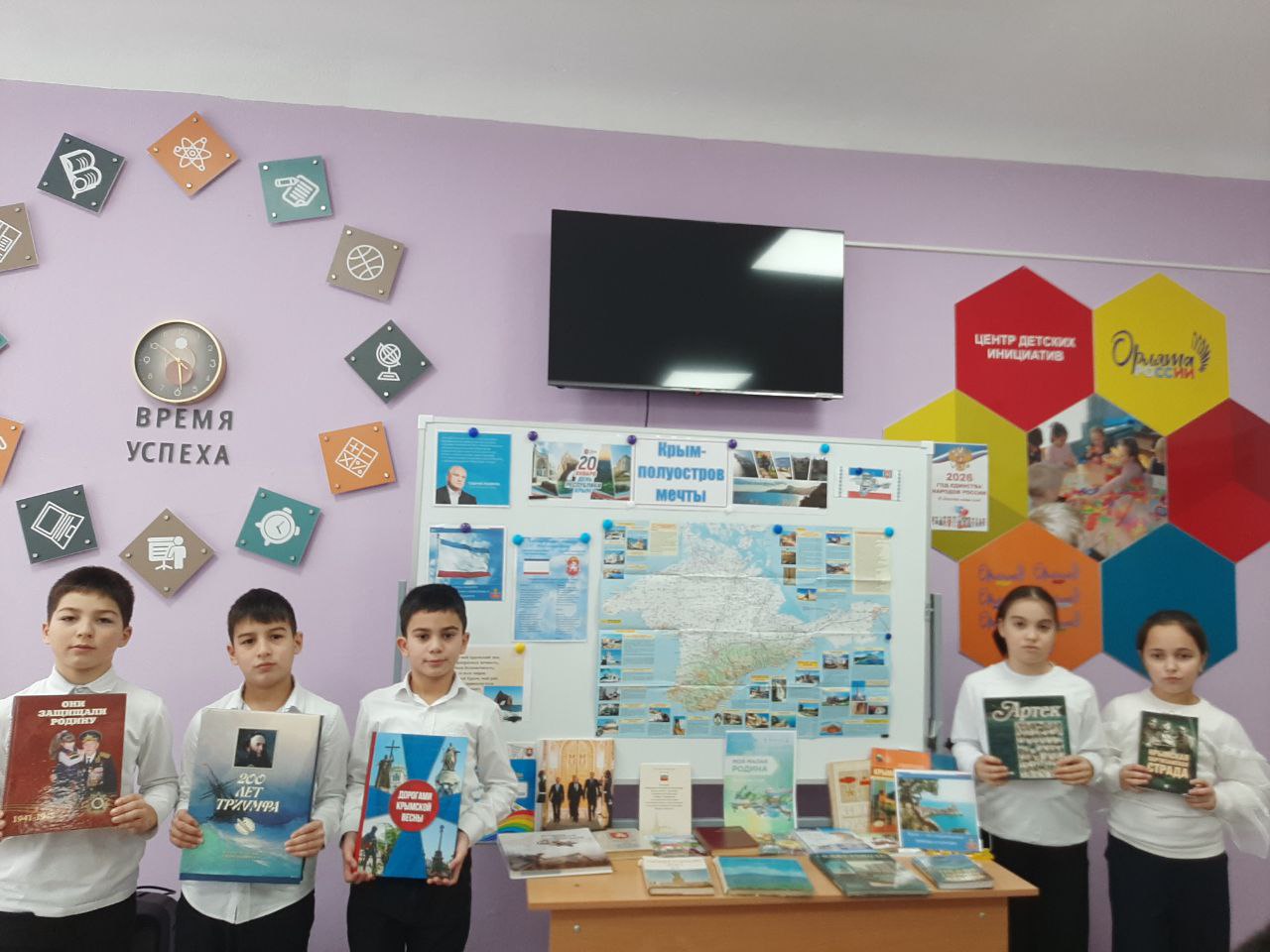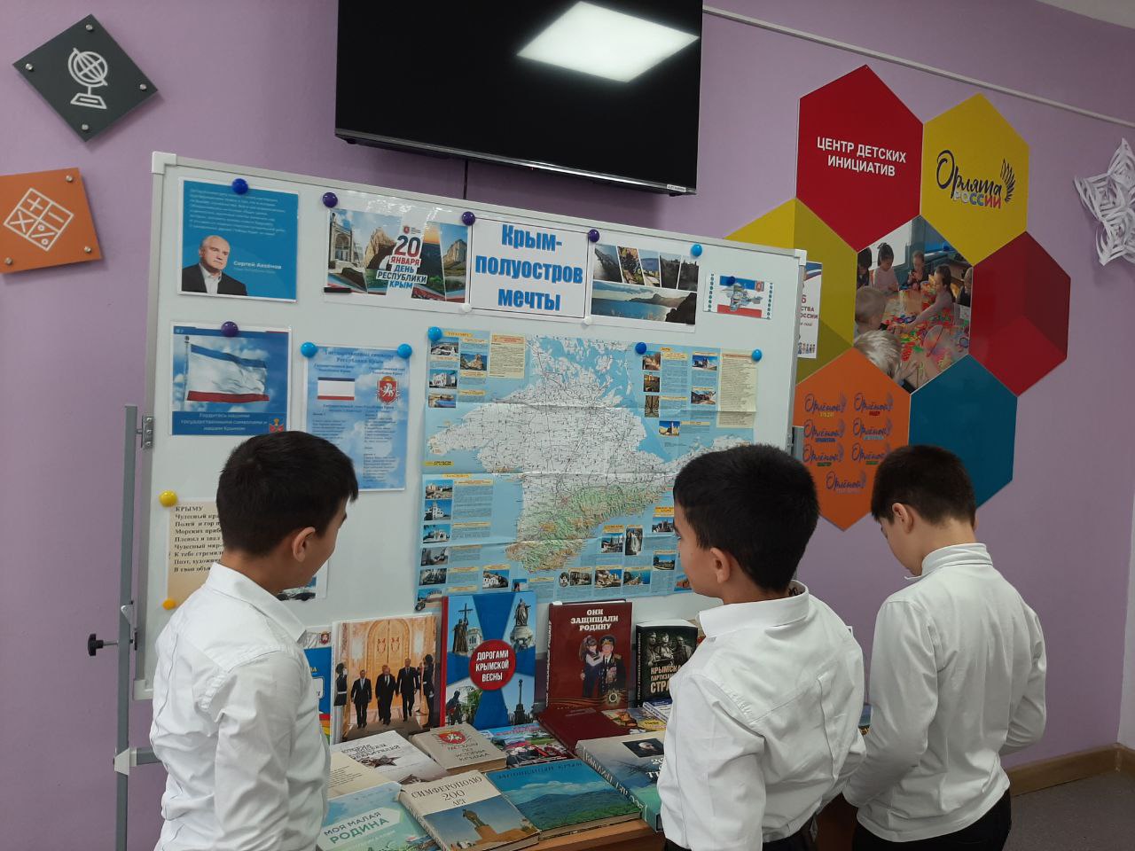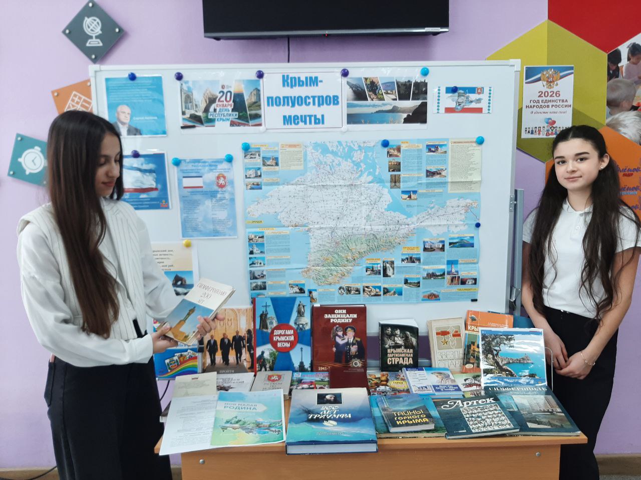 20 января в школе прошел День Республики Крым. В этот день для учащихся 1-11 классов, при участии лидеров Ученического самоуправления, были проведены следующие мероприятия: Тематический классный час "Крым - полуостров мечты", открытые уроки по истории, географии и культуре Крыма для 1-11 классов, уроки о значении Дня Республики Крым и его культурных особенностях, конкурс рисунков, стихов и эссе на тему «Крым – моя Родина», онлайн-экскурсии по историческим местам Крыма с использованием видео и презентаций, концертная программа с выступлениями учеников: песни, танцы и театральные постановки на тему: "Мой любимый Крым", беседы для 1-4 классов "День Республики Крым", в библиотеке организована выставка печатных изданий, мемуарной и исторической литературы, посвященной Дню Республики Крым которая продолжит свою работу на постоянной основе.